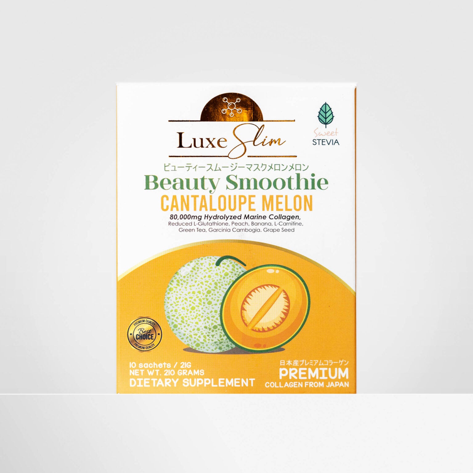 Luxe Slim Cantaloupe Melon Beauty Smoothie is a powerful blend of 80,000mg of Hydrolyzed Collagen from Japan, Glutathione, Garcinia Cambogia, and L-Carnitine. This premium collagen drink will help you achieve your beauty dreams!